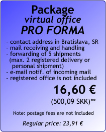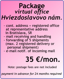 • registered office in Bratislava, Slovakia (or contact address) to business companies, mail receiving and forwarding
